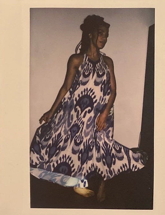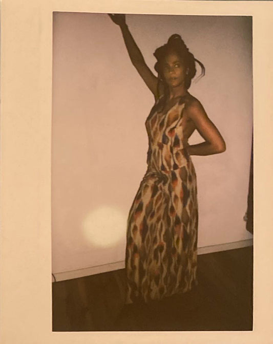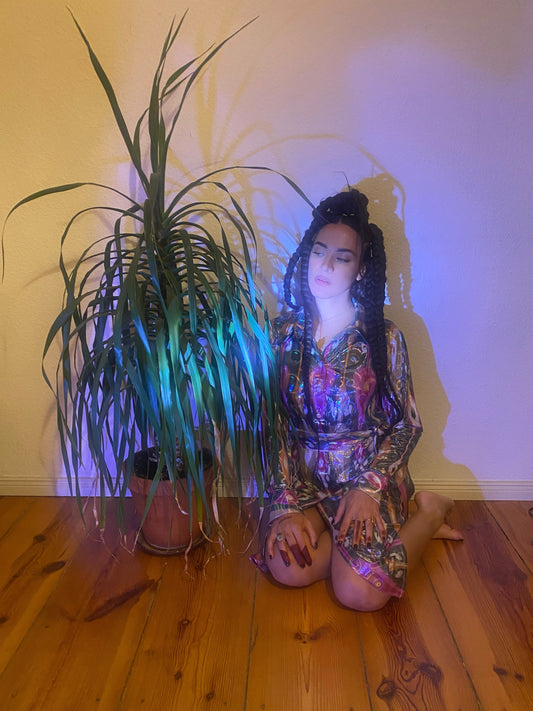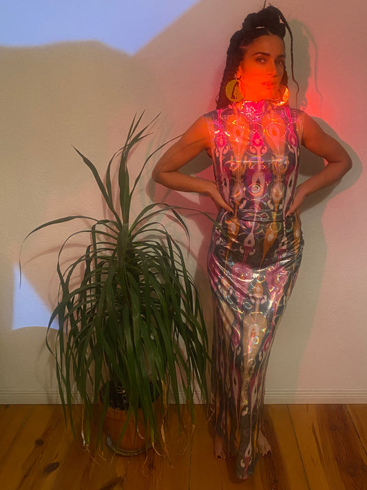 Mock Turtleneck Floor Length Dress in Acid Holograph Adras